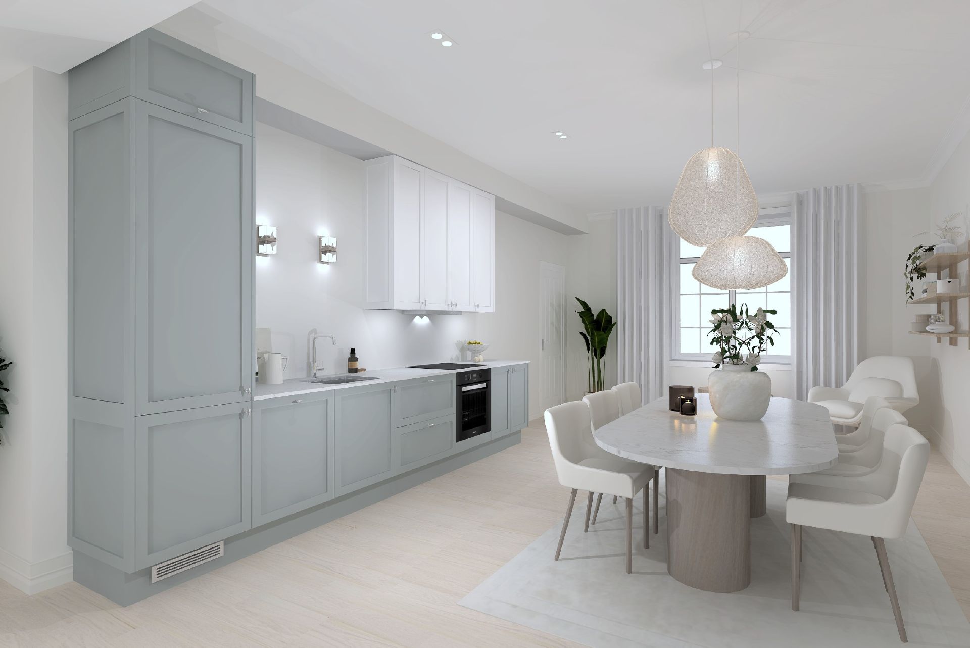 Illustrasjon: Svane Kjøkkenet. Bildet viser kjøkkenleveransen fra Svane Kjøkkenet og er ment som en illustrasjon for å vise omfanget av kjøkkenleveransen. Andre illustrerte elementer er ikke en del av leveransen.