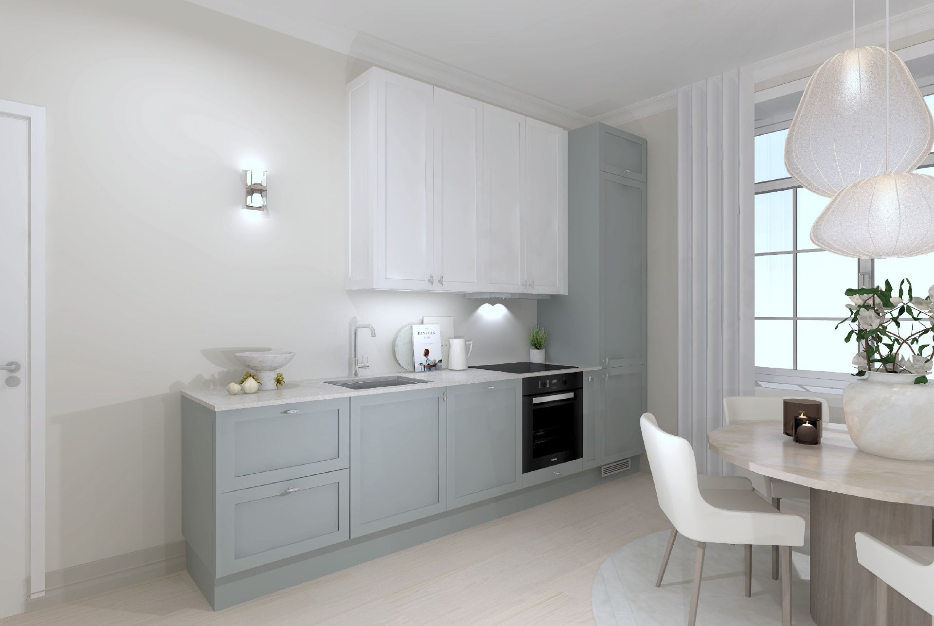 Illustrasjon: Svane Kjøkkenet. Bildet viser kjøkkenleveransen fra Svane Kjøkkenet og er ment som en illustrasjon for å vise omfanget av kjøkkenleveransen. Andre illustrerte elementer er ikke en del av leveransen.