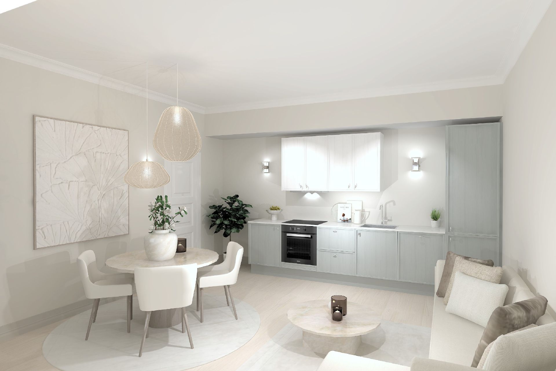 Bo lettvint i klassisk drakt, midt i hjertet av Tønsberg. Her ligger mulighetene klare til å nyte alt det Tønsberg har å by på, rett utenfor egen leilighet. Stuen er lys og ligger i åpen løsning med kjøkkenet. Her har du plass til både sofa og spiseplass. Soverommet innehar avsatt plass til garderobeløsning, det er i tillegg avsatt plass til garderobe i gang. Kjøkken fra danske Svane Kjøkkenet, modell New Tradition, forener tidløs estetikk og moderne arkitektur. Overflatene og den håndlagde finishen gir det hele en flott «touch» og henvender seg til de som verdsetter kvalitet og nytenkning. Det medfølger stekeovn, steketopp, oppvaskmaskin, ventilator med kullfilter og kombinert kjøl og fryseskap fra Miele.